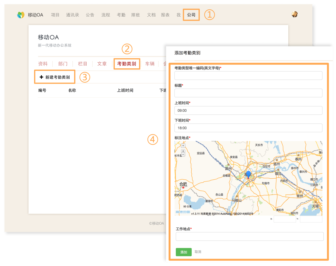 首先,由超级管理员或考勤管理员新建考勤类别。